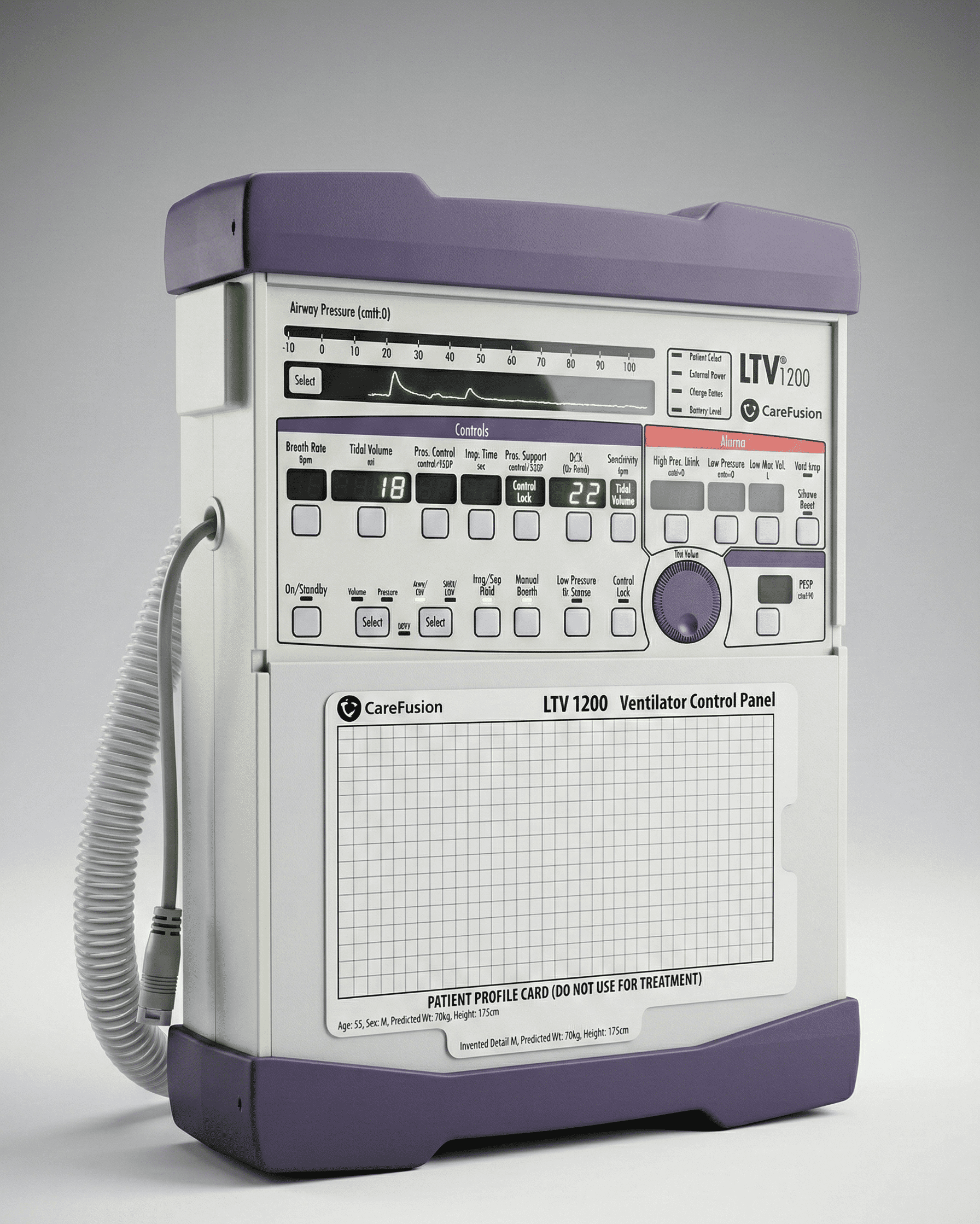 The LTV 1200 Portable Ventilator is a compact and versatile respiratory support system designed for use in hospitals, emergency care, transport ventilation, and home care environments. Known for its reliability and ease of use, the ventilator provides advanced ventilation modes and precise respiratory control for adult and pediatric patients.